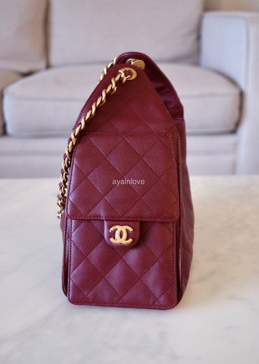CHANEL 25A Burgundy Caviar Small 25 Bag Gold Hardware