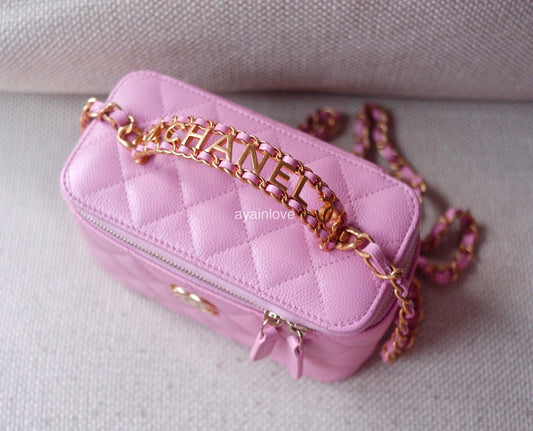 CHANEL 22S Pick Me Up Pink Caviar Top Handle Vanity Brushed Gold Hardware
