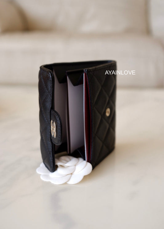 CLASSIC BLACK CAVIAR ADJUSTABLE LEATHER CHAIN BELT BAG CARD HOLDER LIGHT GOLD HARDWARE