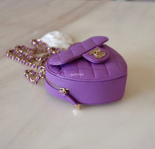 CHANEL 22S Purple CC in Love Heart Small Cross-Body Bag Light Gold Hardware