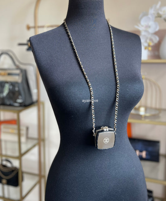CHANEL Mini Minaudiere Mirror Compact Beauty Box Clutch on Chain Light Gold Hardware
