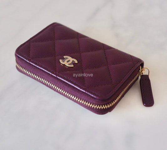 CHANEL 24B Burgundy Caviar Zippy Card Holder Wallet Light Gold Hardware