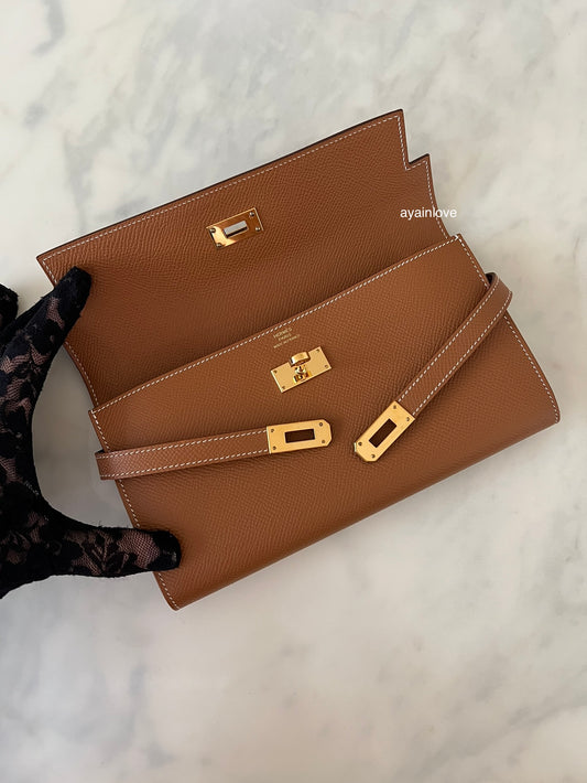 HERMES Kelly Long Wallet Gold Epsom Gold Hardware Z Stamp