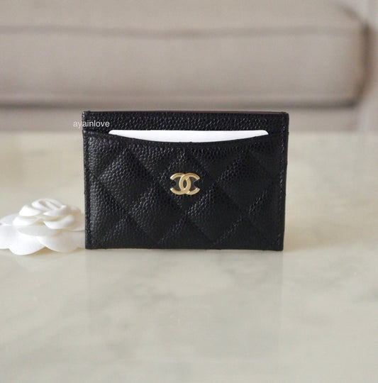 CHANEL Classic Black Caviar Flat Card Holder Gold Hardware