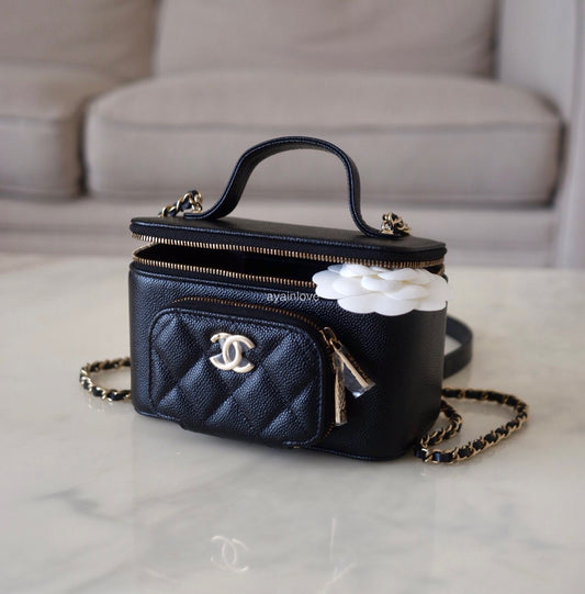 CHANEL Black Caviar Cargo Top Handle Rectangular Vanity 2023 Gold Hardware