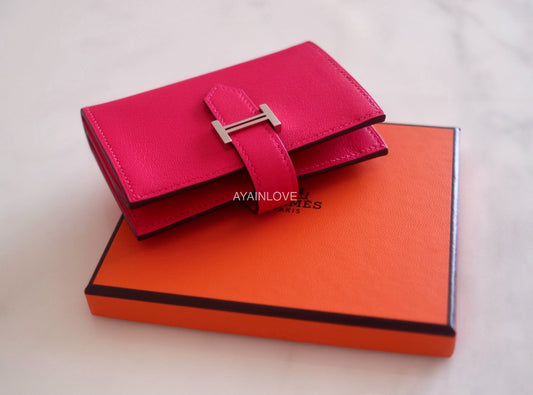 HERMES Bearn Chevre Goat Skin Mini Wallet Rose Extreme Palladium Hardware Y Stamp