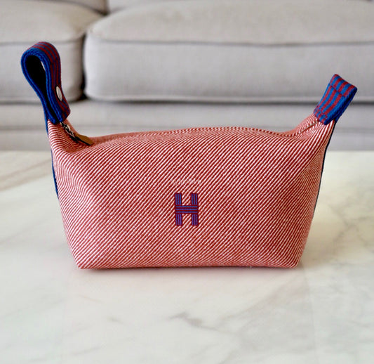HERMES Bride-A-Brac Tomette Red Blue Wool H Natte Small PM Case Palladium Hardware