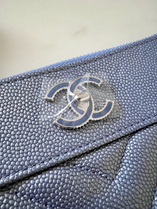 CHANEL 19P Iridescent Blue Chevron Mademoiselle Mini O Case Silver Hardware