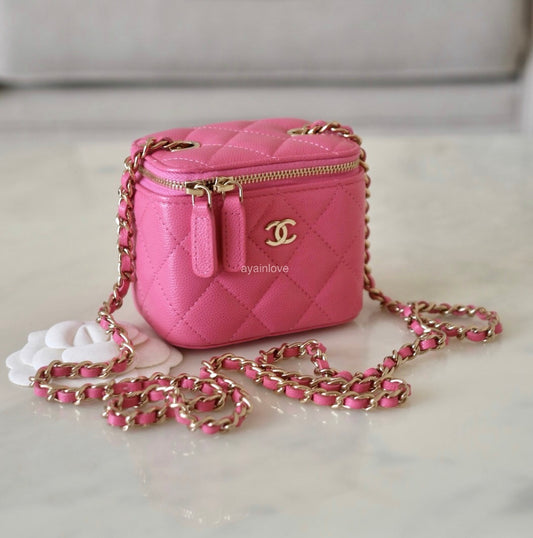 CHANEL 20S Pink Caviar Square Vanity On Chain Light Gold Hardware