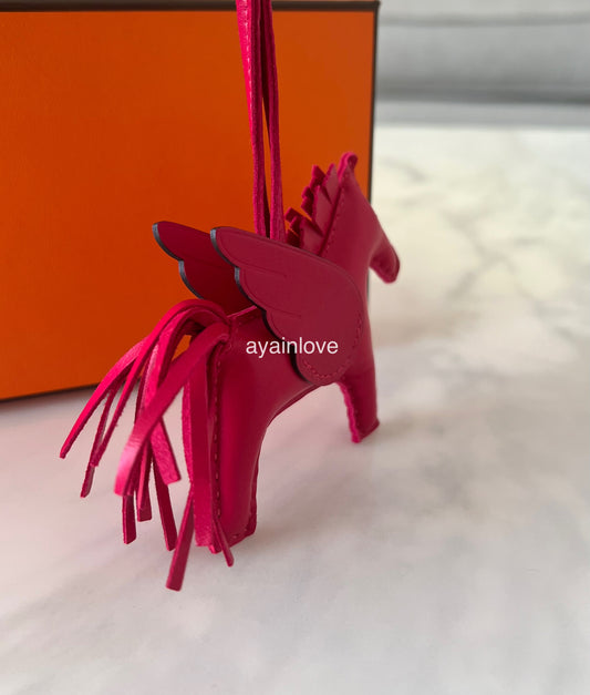 HERMES Rodeo Pegase PM Bag Charm Rose Mexico Stamp B