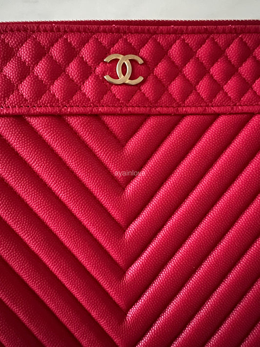 CHANEL Exclusive 17C Cuba Collection Red Caviar Chevron Large O Case Gold Hardware