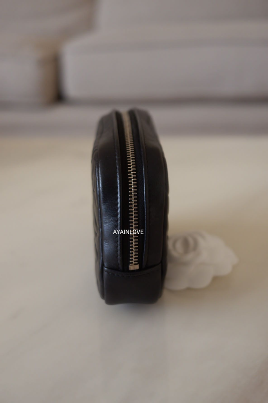 CHANEL 17K Pearly Black Camellia Small Cosmetic Pouch Silver Hardware