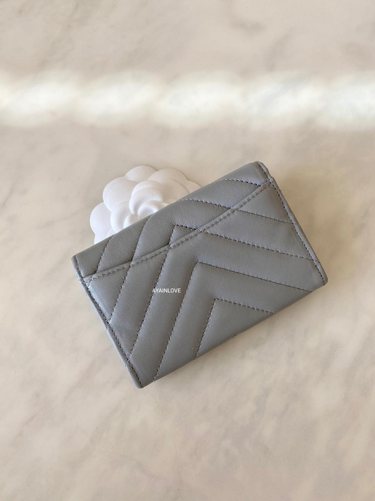 CHANEL 20S Grey Chevron Lamb Skin Snap Card Holder Light Gold Hardware