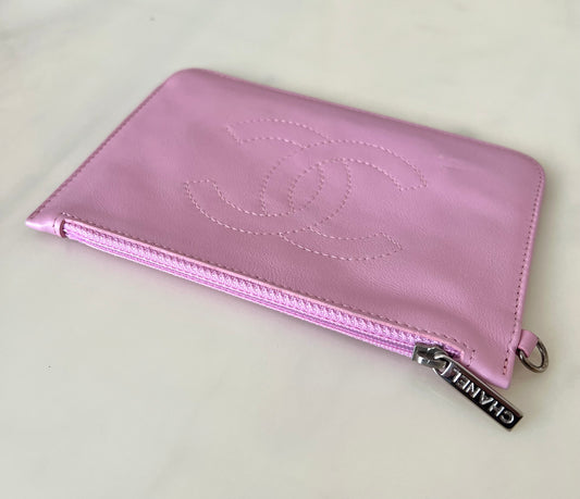 CHANEL Vintage Pink Lambskin CC Mini O Case Pouch Silver Hardware