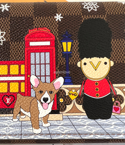 LOUIS VUITTON LV Holiday Limited Edition Vivienne London Animation 2021 Sarah Flap Wallet Damier Ebene Gold Hardware