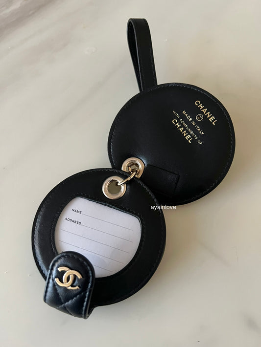 CHANEL Exclusive Black Lambskin Luggage Tag Key Chain Light Gold Hardware