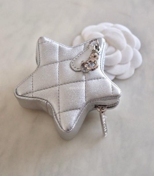 CHANEL Metallic Silver Walk Of Fame Star Clip On Zip Coin Purse Silver Hardware
