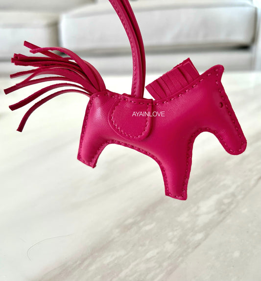 HERMES Rodeo Horse PM Bag Charm Rose Mexico Stamp Y