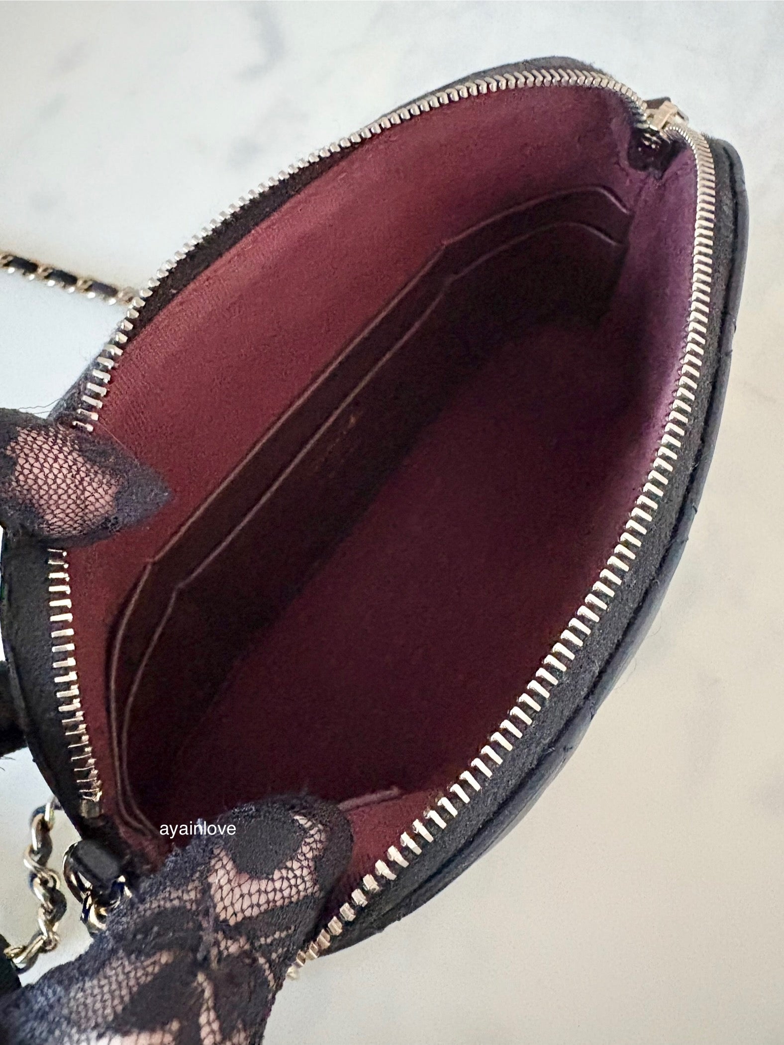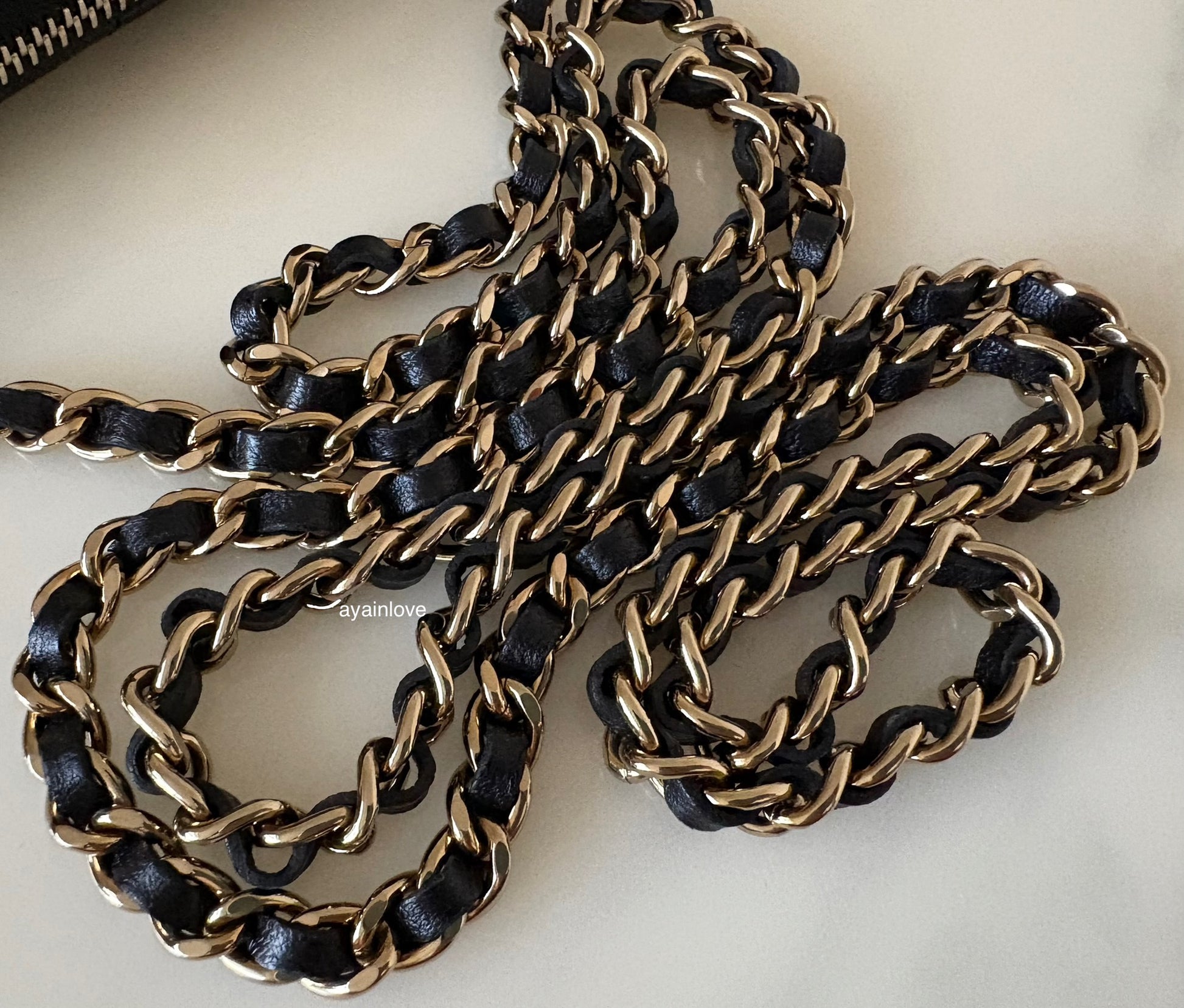 CHANEL Small Black Lambskin Zip Clutch on Chain Camera Bag Light Gold Hardware
