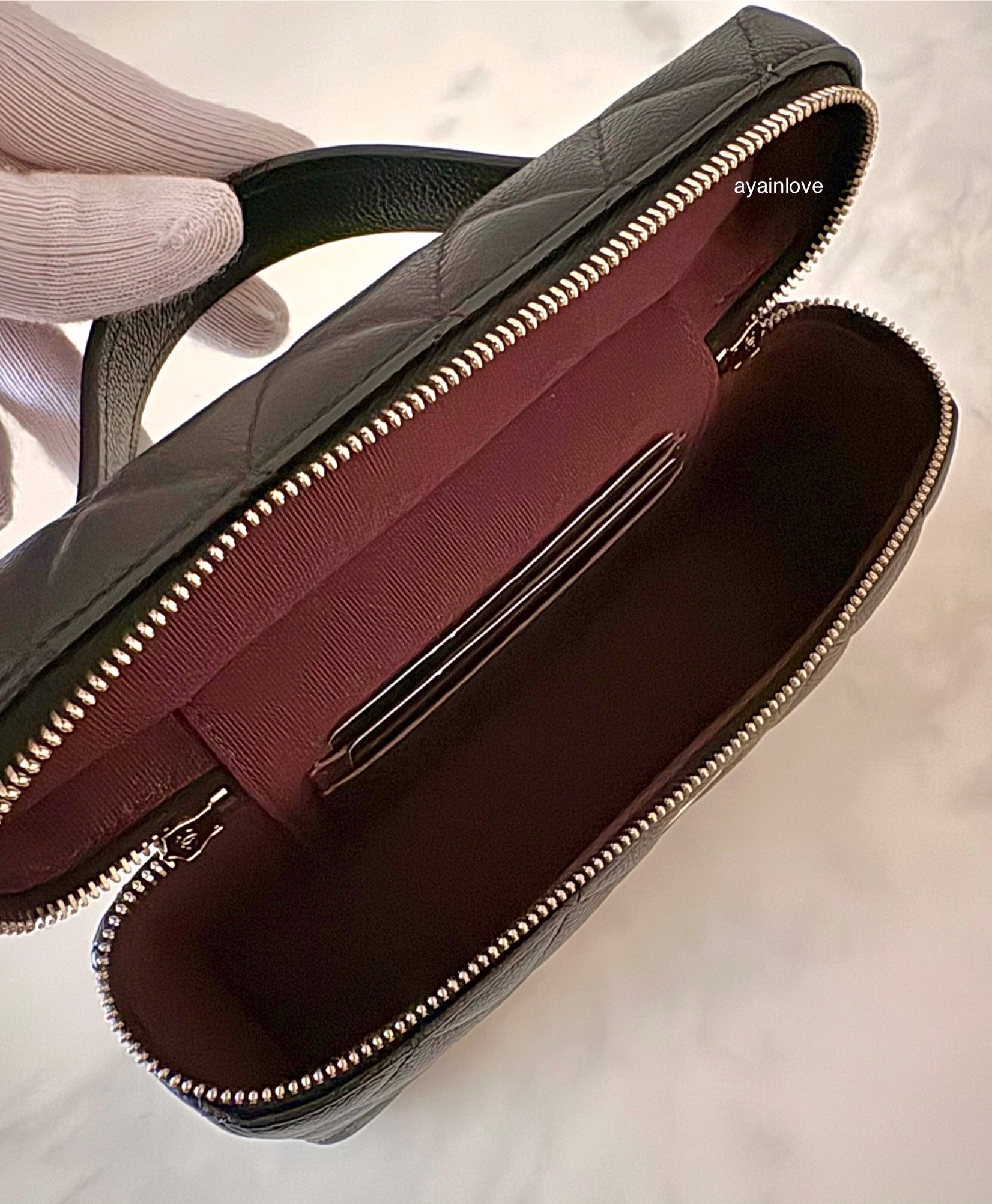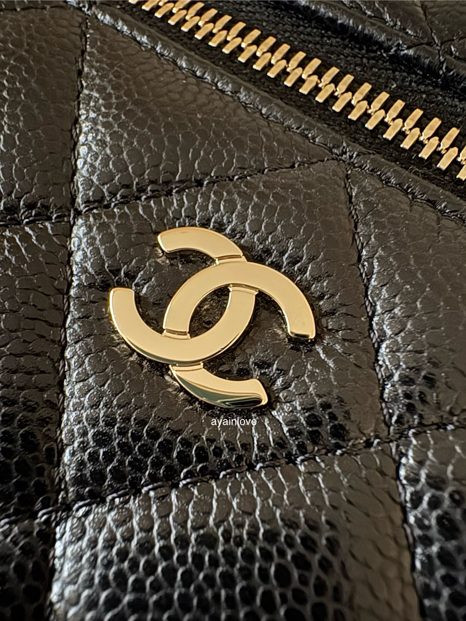 CHANEL 2025 Black Caviar Top Handle Flat Vanity on Chain Light Gold Hardware