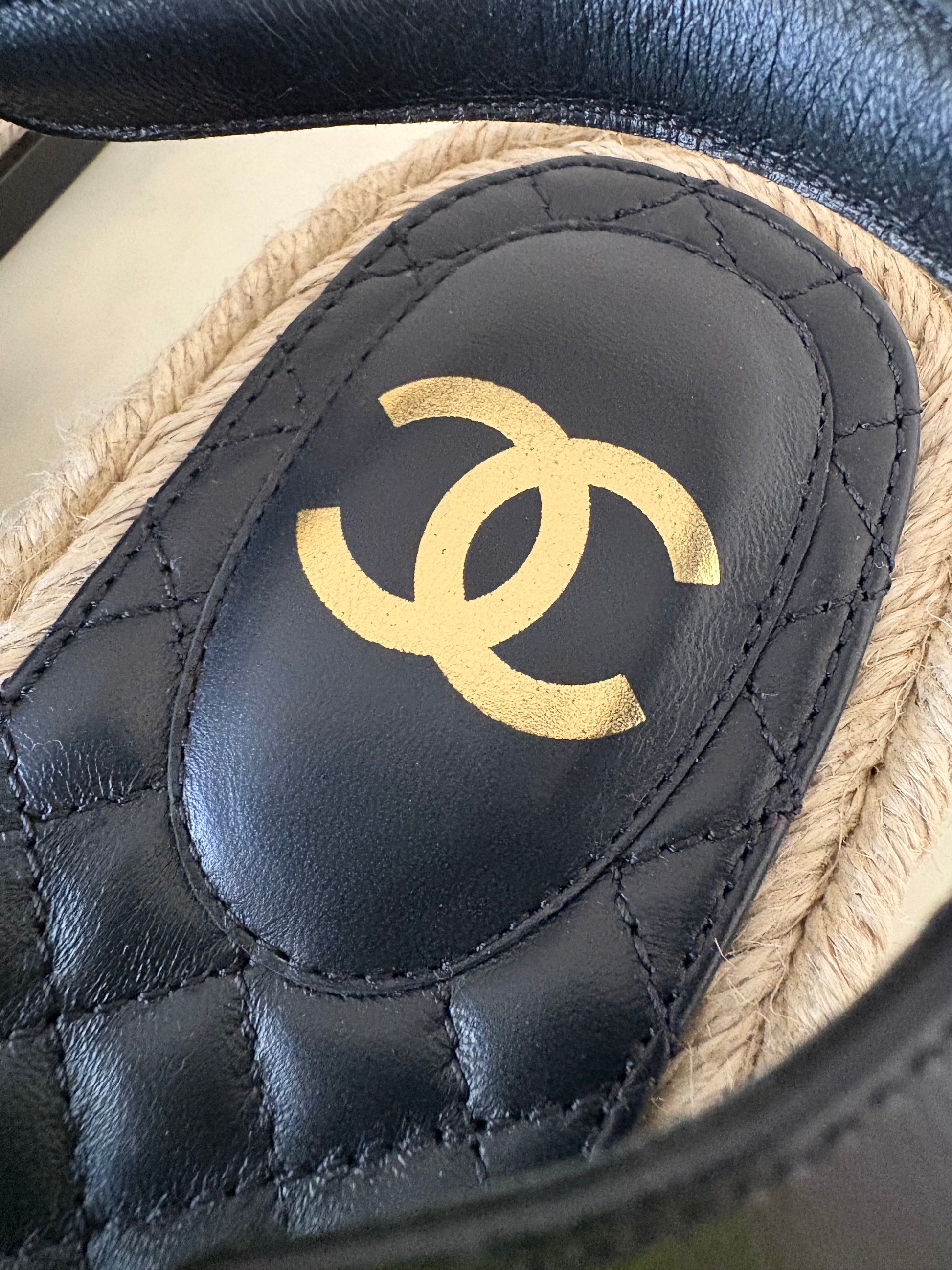 CHANEL Dad Sandals Black Green Houndstooth CC Gold Hardware Size 41