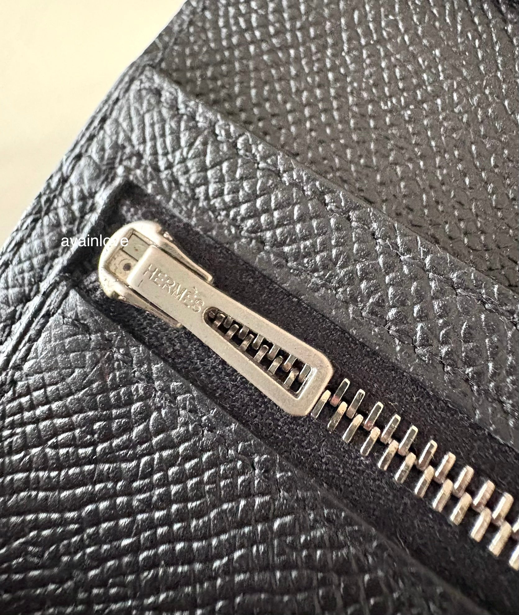 HERMES Bearn Compact Wallet Epsom Black Noir Palladium Hardware C Stamp