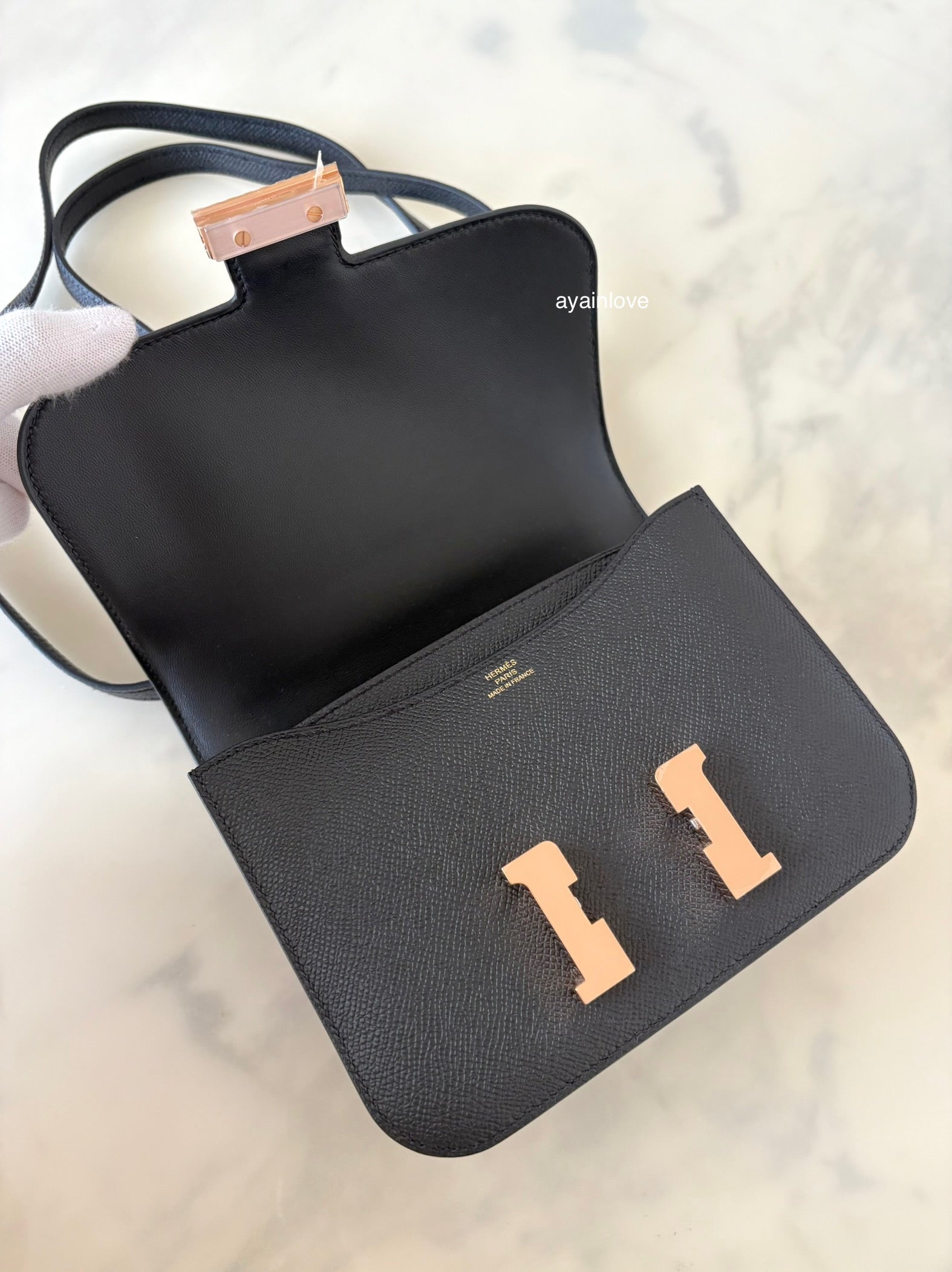 HERMES Constance Mini 18 Noir Black Epsom Rose Gold Hardware W Stamp