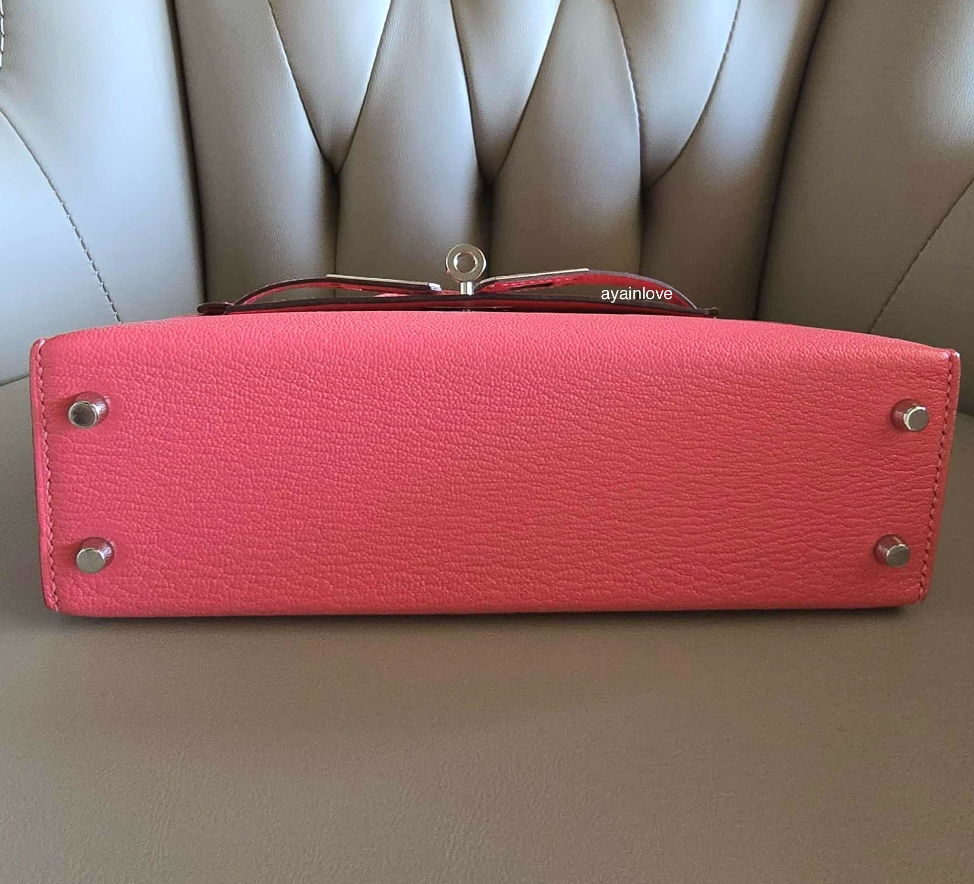 HERMES Mini Kelly 20 Pink Rose Lipstick Chèvre Mysore Palladium Hardware D Stamp