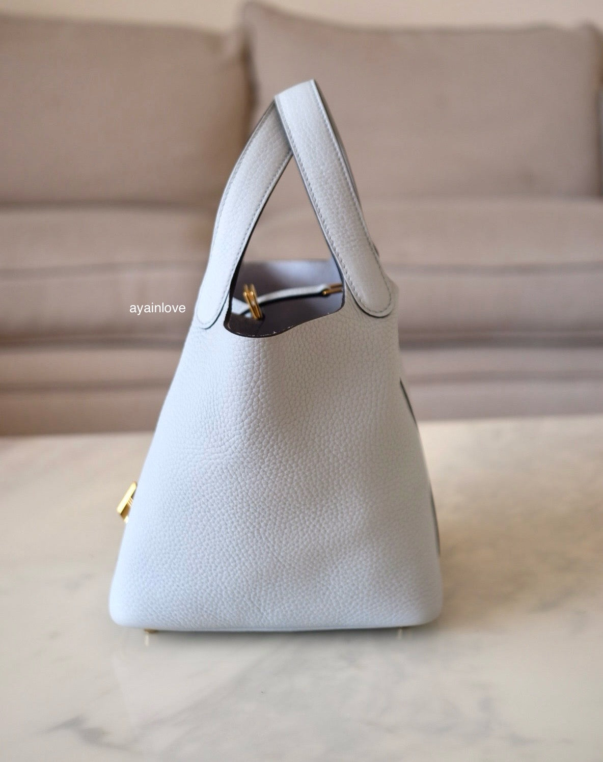 HERMES Picotin 18 Bleu Pale Taurillion Clemence Gold Hardware B Stamp