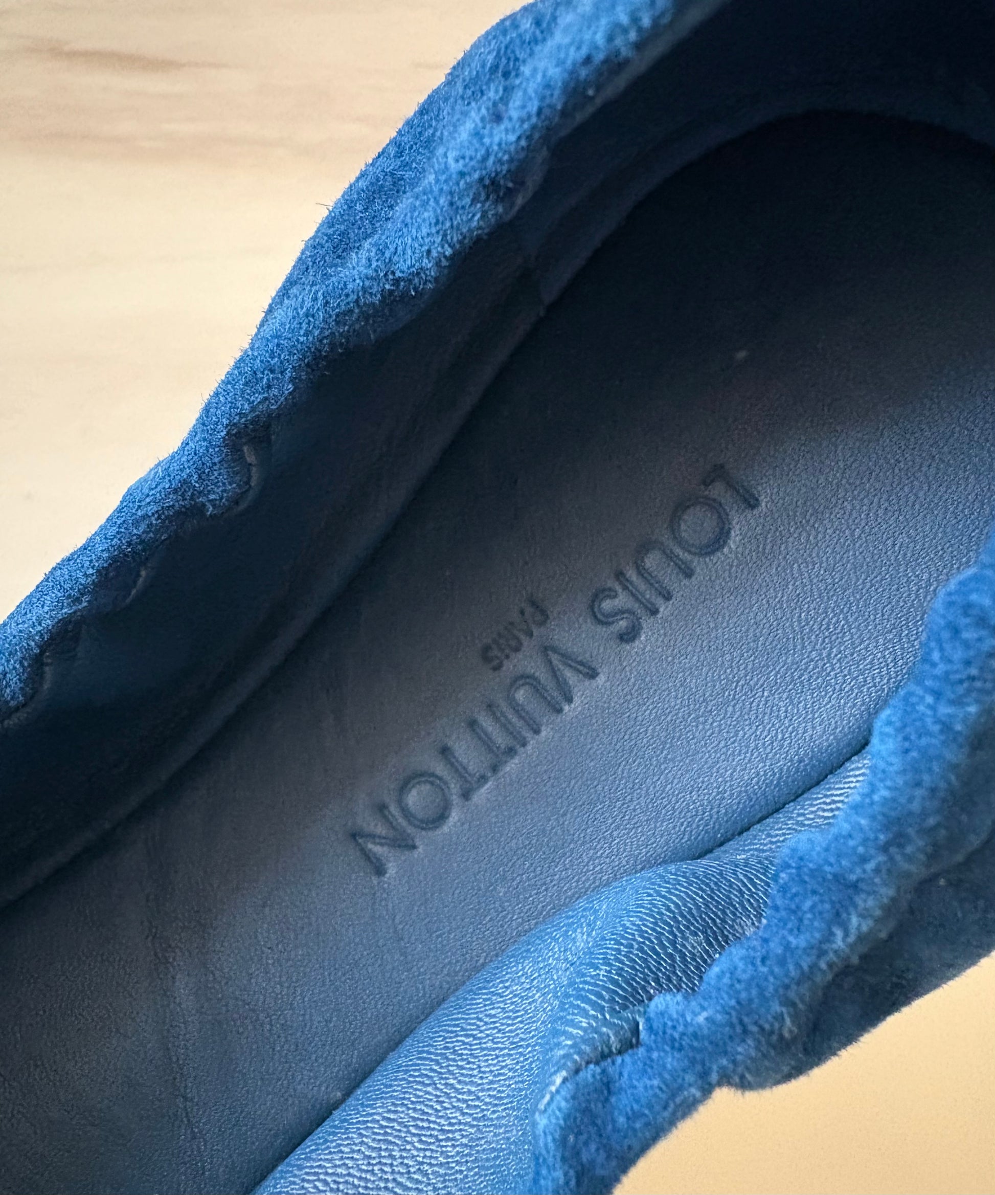 LOUIS VUITTON Blue Pompom Velvet Calfskin Flirty Ballet Flat Sz 38