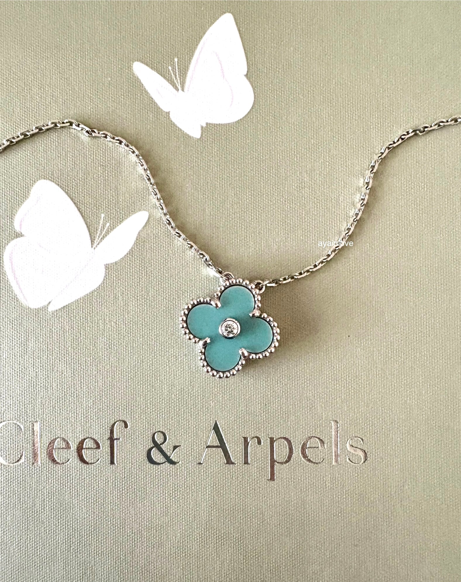 VAN CLEEF ARPELS VCA 18KT White Gold Limited 2022 Holiday Pendant Tiffany Blue Diamond Vintage Alhambra