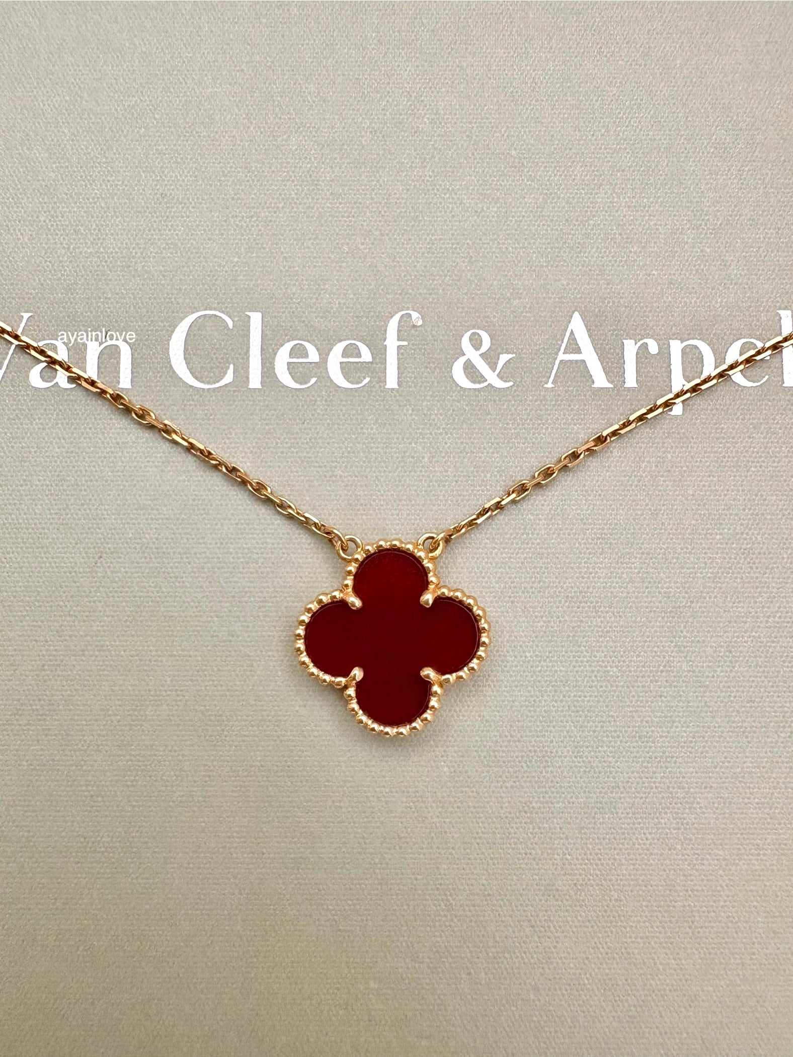 VAN CLEEF ARPELS VCA 18KT Yellow Gold Carnelian Vintage Alhambra Pendant Necklace