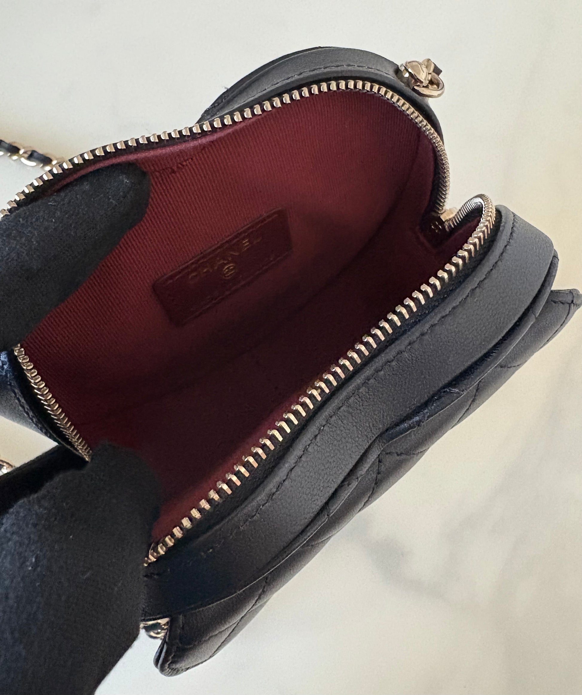 CHANEL 22S Black CC in Love Heart Small Cross-Body Bag Light Gold Hardware
