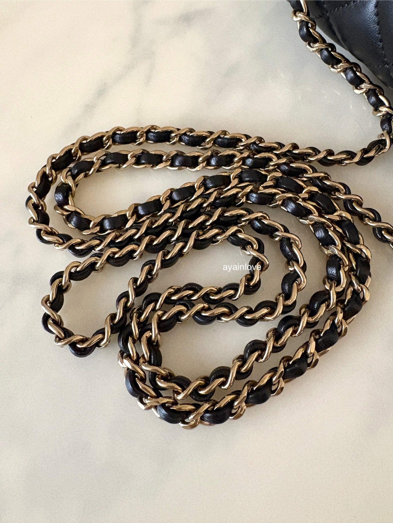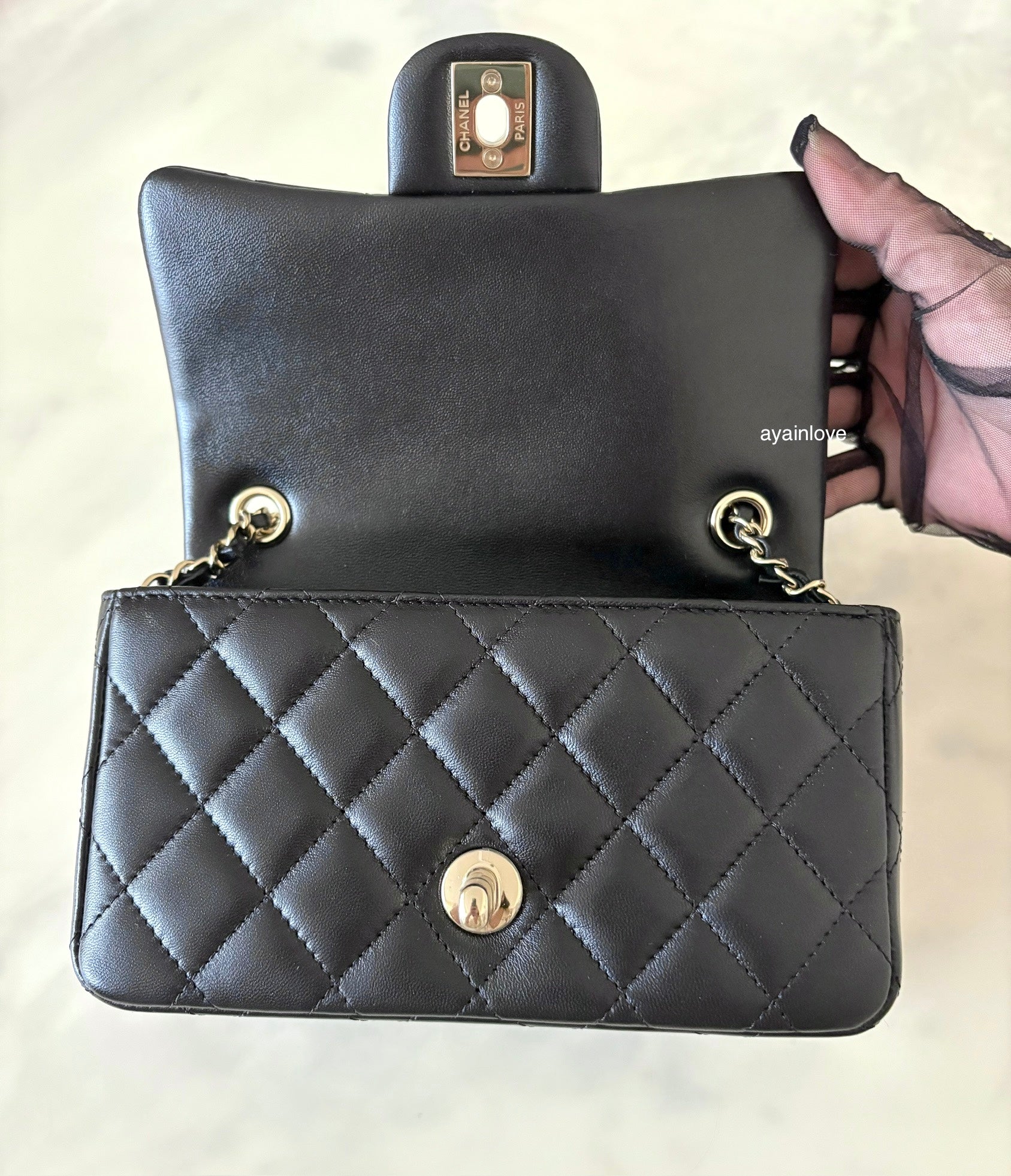 CHANEL 24K Black Lambskin Classic Rectangular Extra Mini 18cm Flap Light Gold Hardware