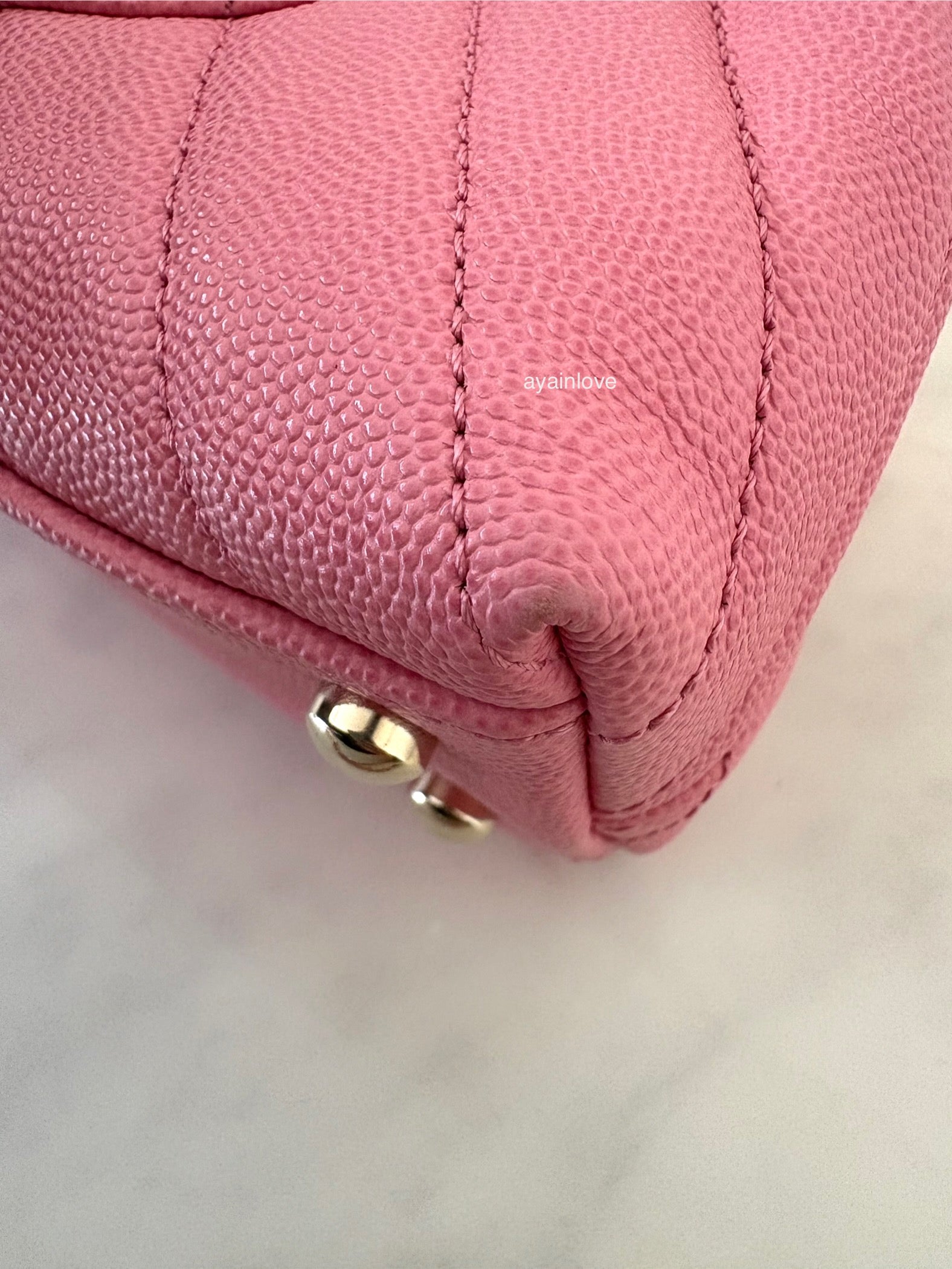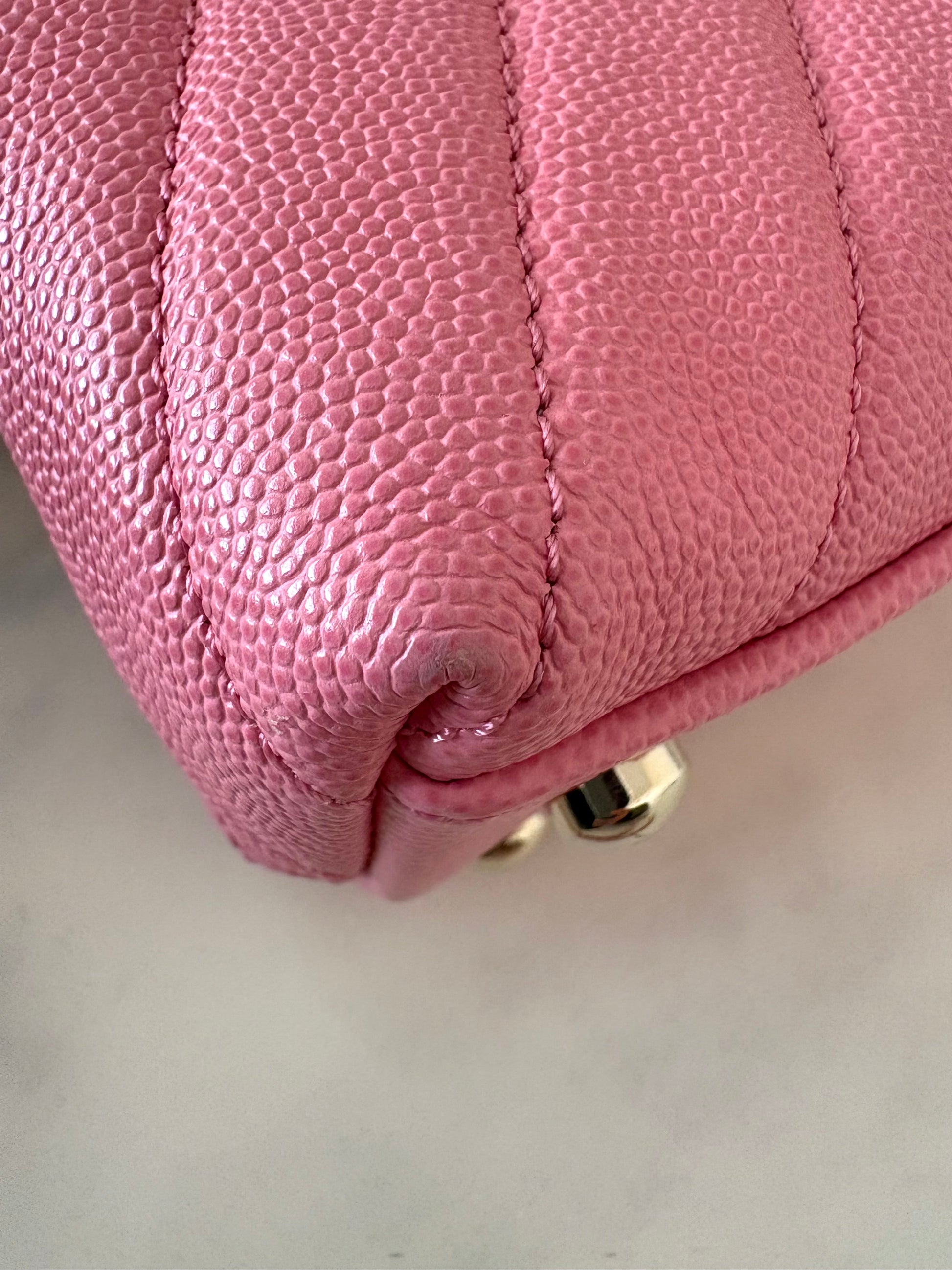 CHANEL Pink Caviar Chevron Small Coco Handle 24 cm Light Gold Hardware