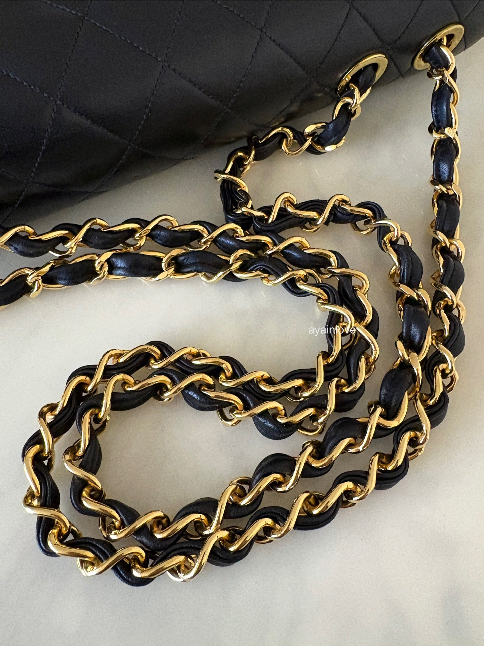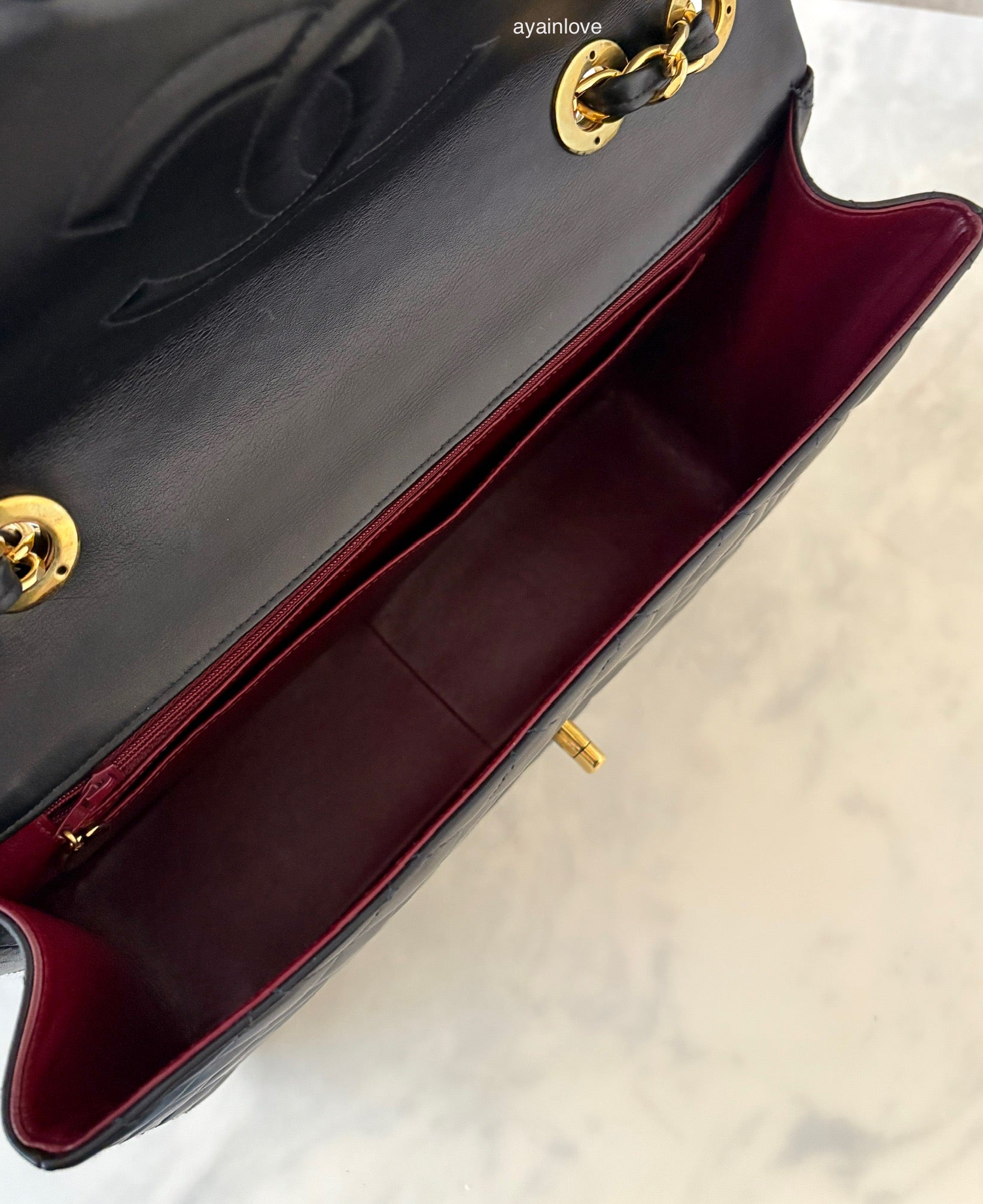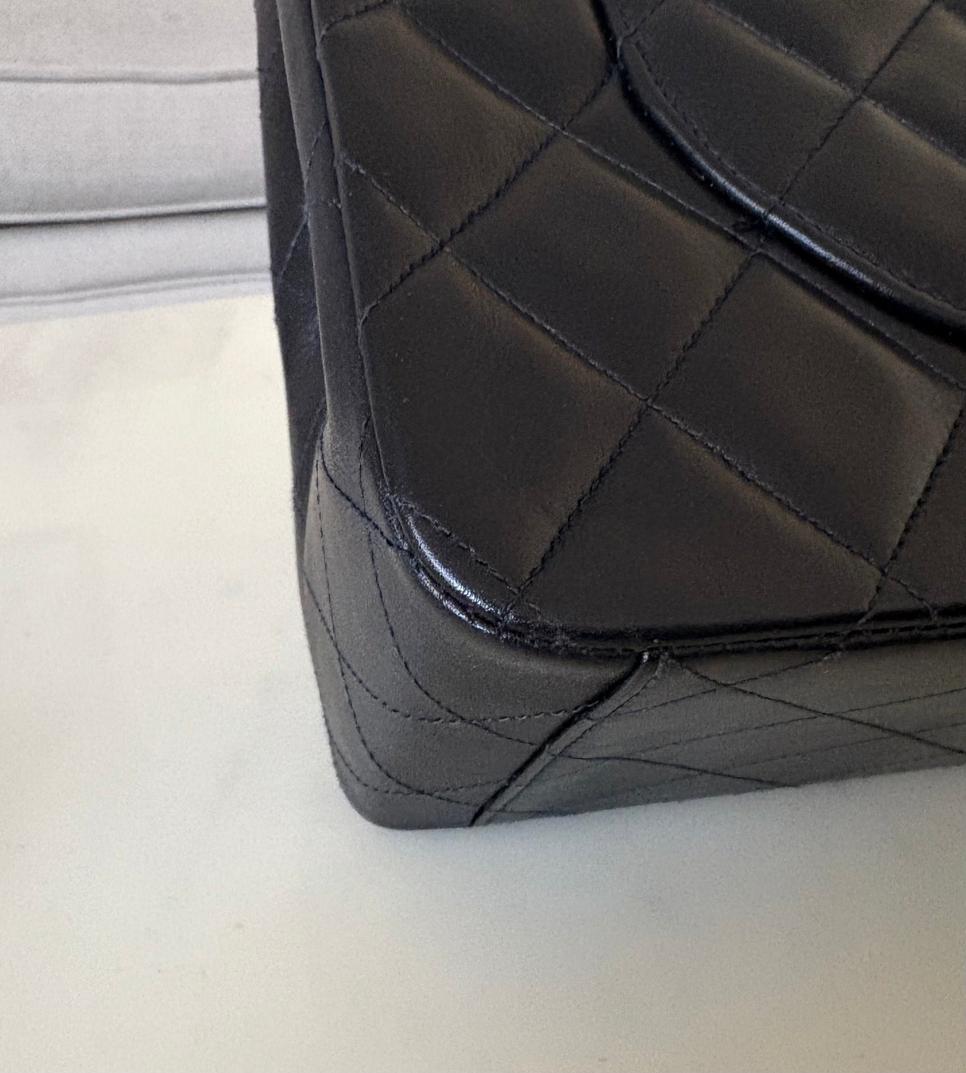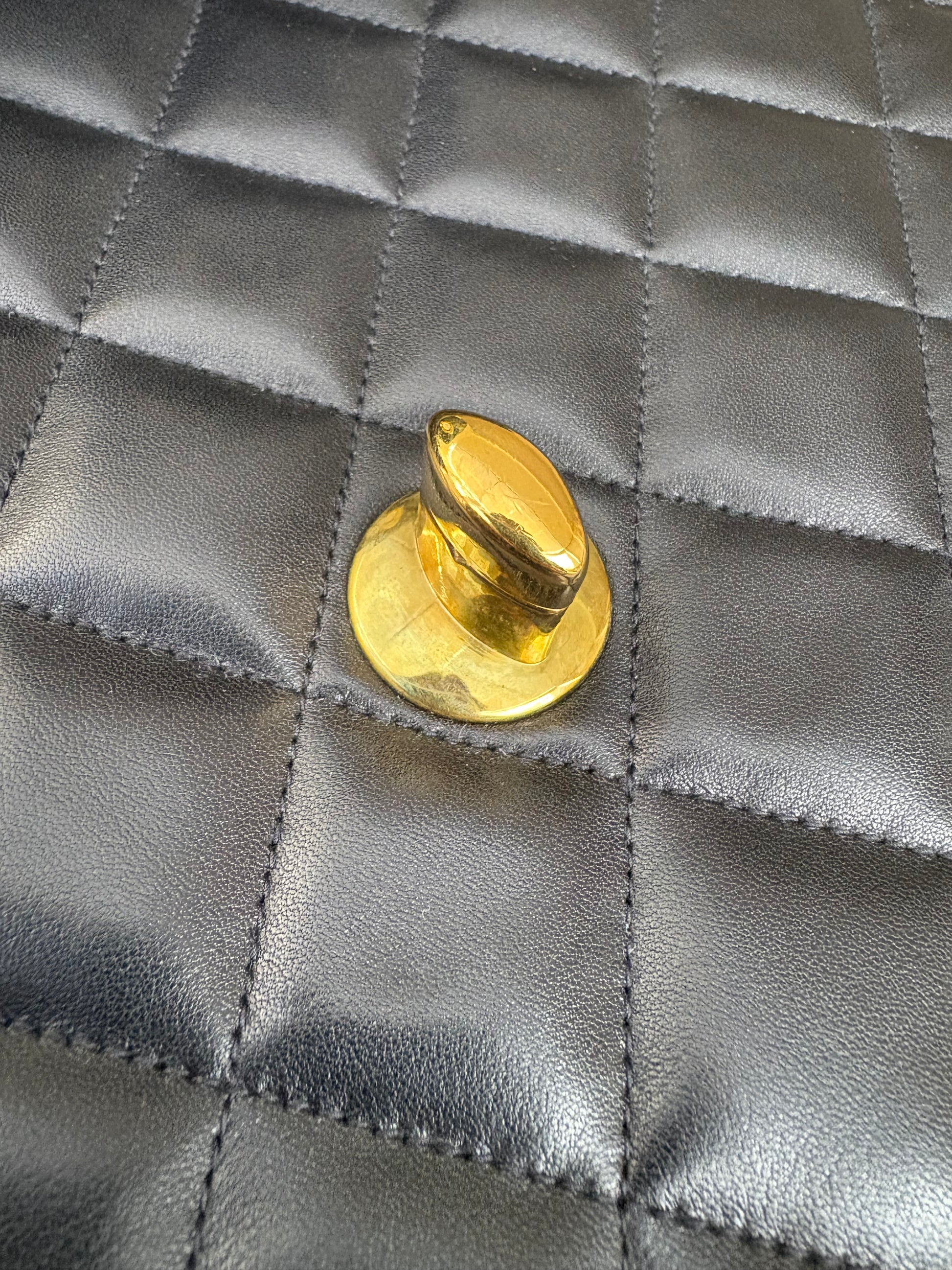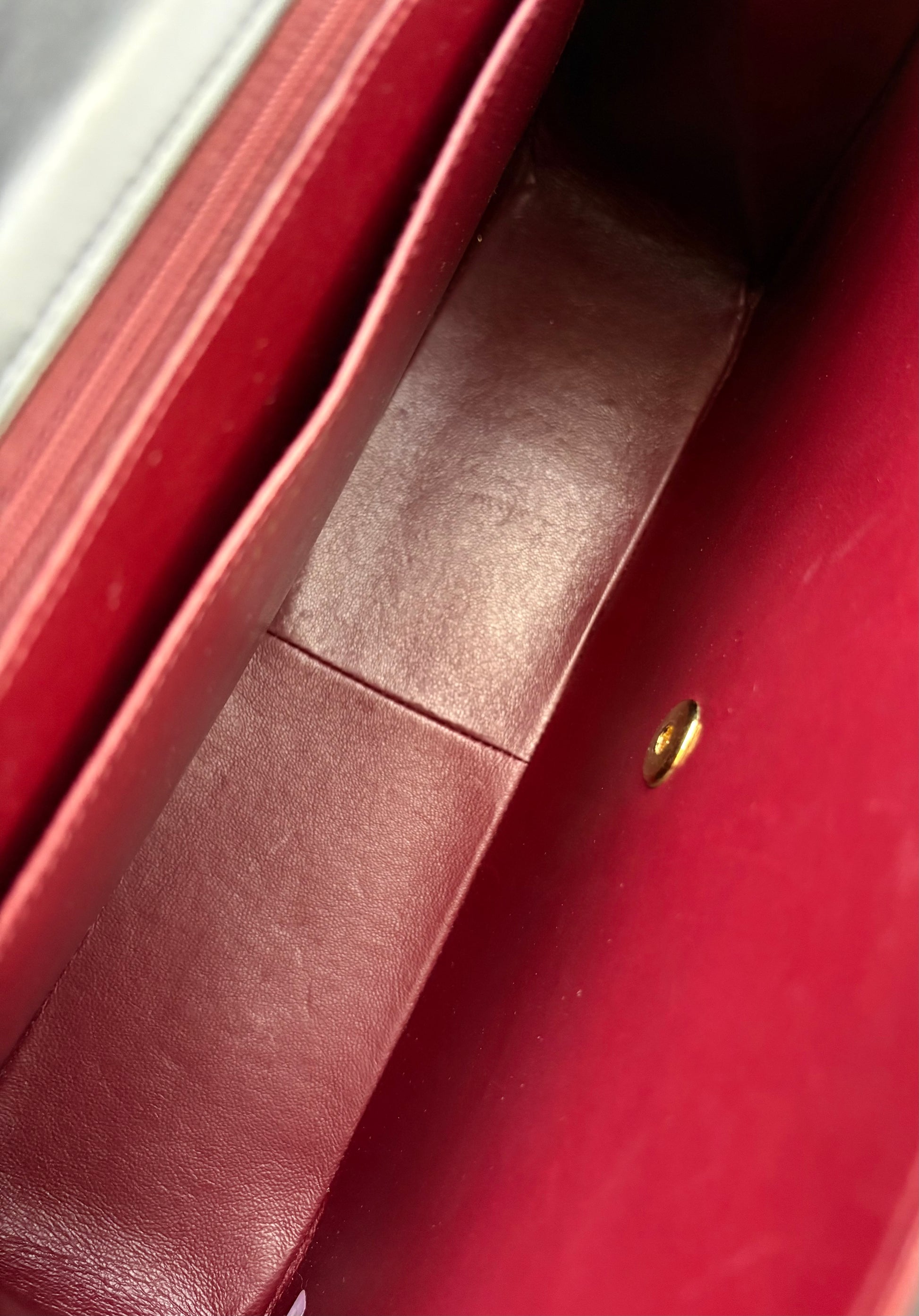 This gorgeous vintage gem is in pristine vintage condition with butter-soft leather quiltings. Corners are clean without visible wear. Creasing on the base and a tiny rub on one base edge (hardly seen). It appears to be in original condition (non refurbished). Interior is pristine and clean. Hologram sticker is intact and readable. 24KT gold plated hardwares remain very shiny with minimal sign of wear and retain deep yellow gold characteristics. No odours (assessed on arm’s length). Pristine bag structure.
