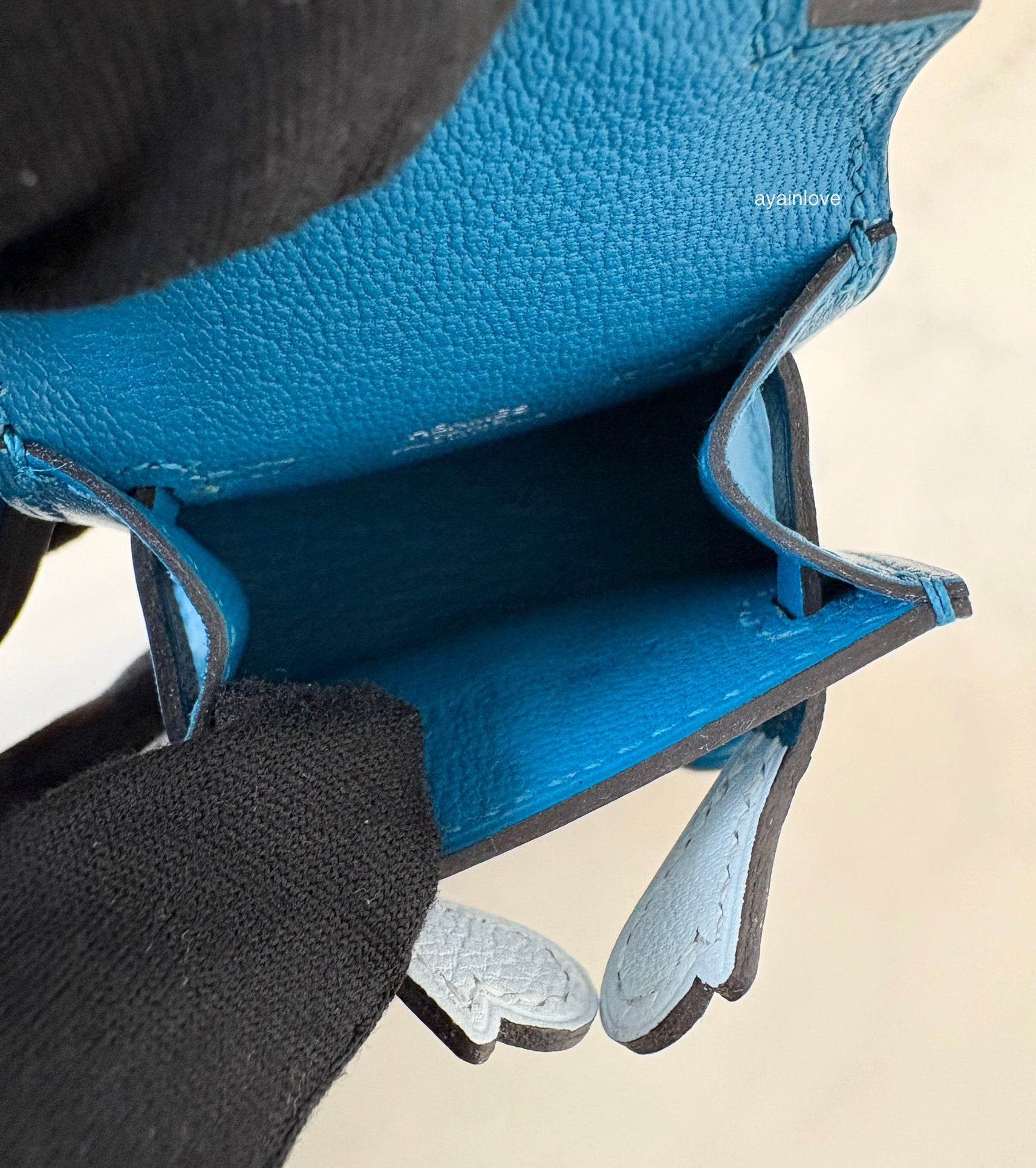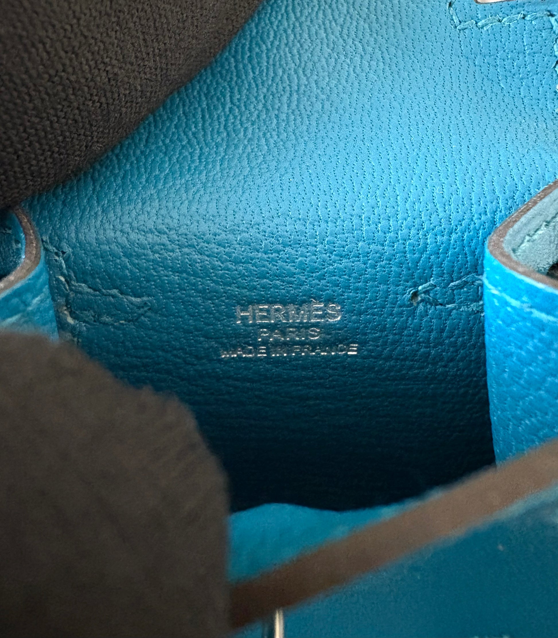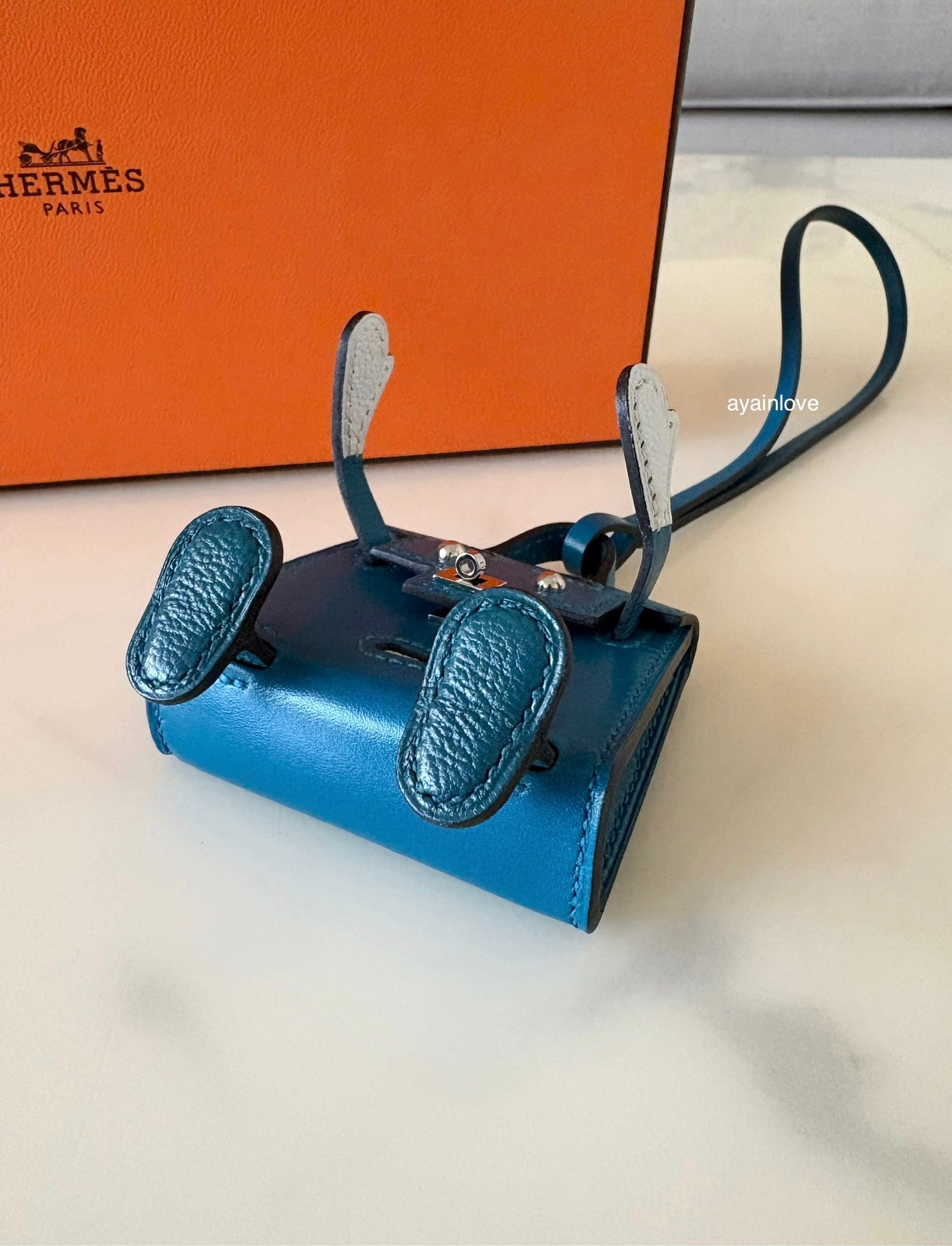 HERMES Kelly Doll Dole Tadelakt Bleu Izmir Bag Charm Palladium Hardware Z Stamp