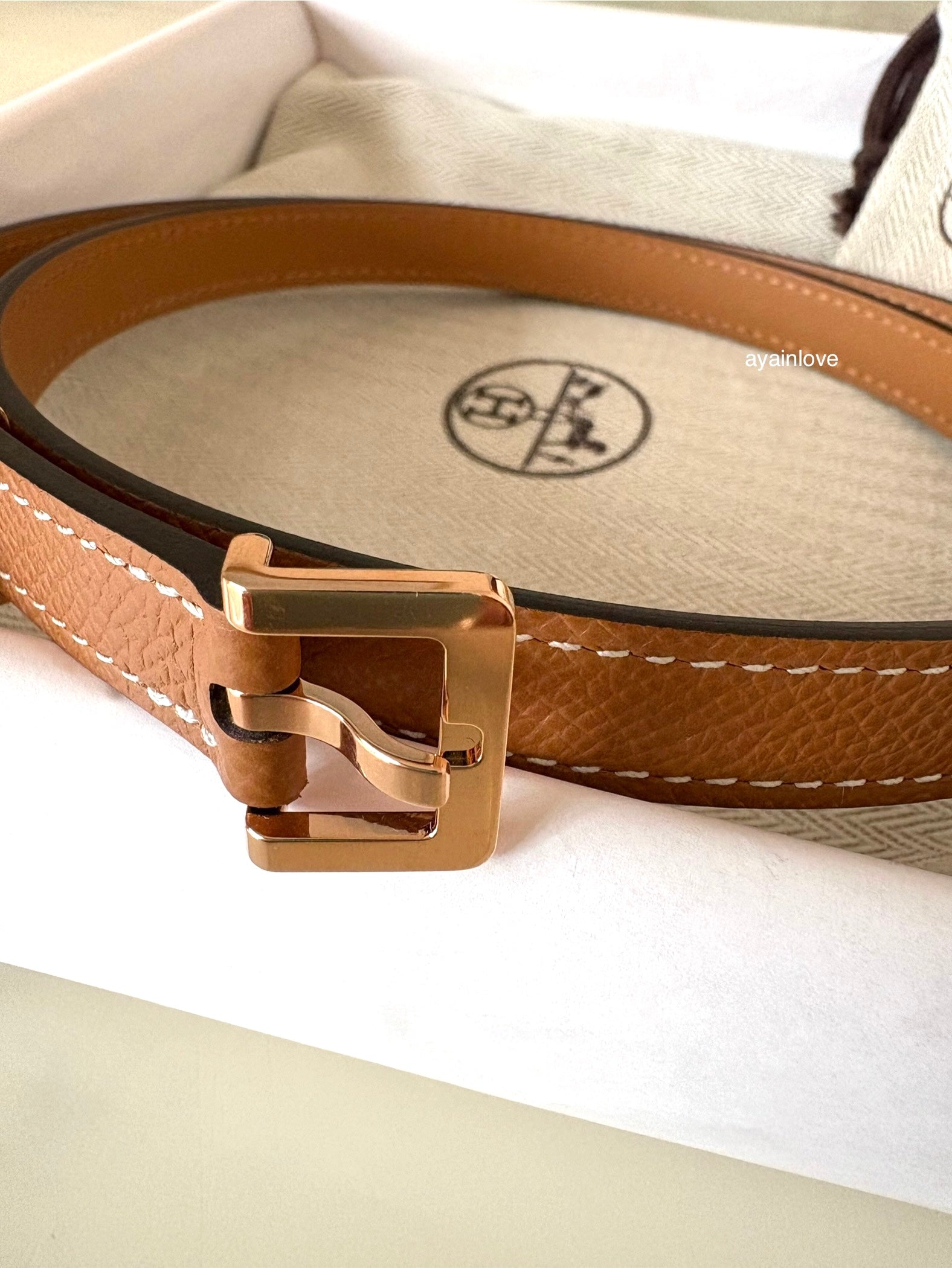 HERMES Pop H 15 Belt Gold Epsom Size 80 Rose Gold Hardware B Stamp